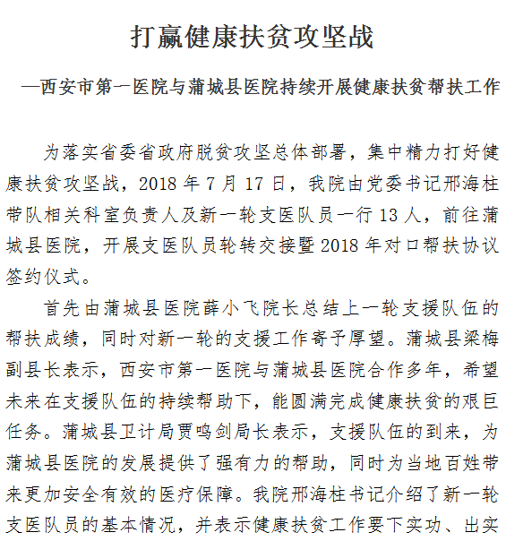 打赢健康扶贫攻坚战 —21点游戏攻略站 与蒲城县医院持续开展健康扶贫帮扶工作