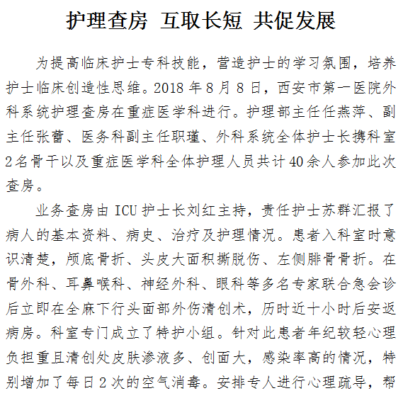 护理查房 互取长短 共促发展