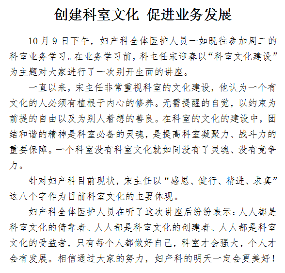 创建科室文化 促进业务发展