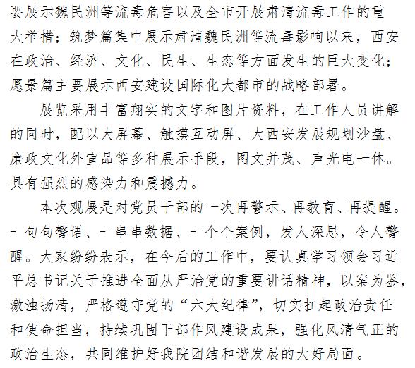 参观“肃清魏民洲等流毒影响推进全面从严治党和反腐败斗争成效展览”