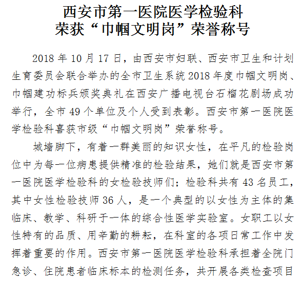 21点游戏攻略站 医学检验科荣获“巾帼文明岗”荣誉称号