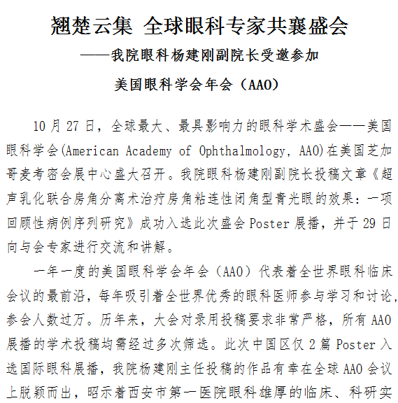 21点游戏攻略站 眼科杨建刚副院长受邀参加美国眼科学会年会(AAO)