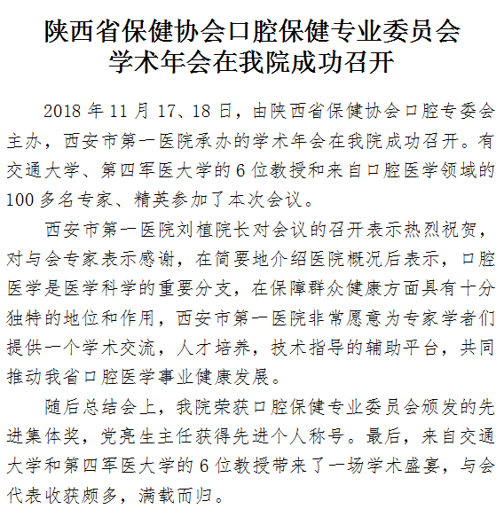陕西省保健协会口腔保健专业委员会学术年会在21点游戏攻略站 成功召开