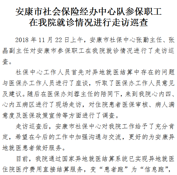 安康市社会保险经办中心队参保职工在21点游戏攻略站 就诊情况进行走访巡查