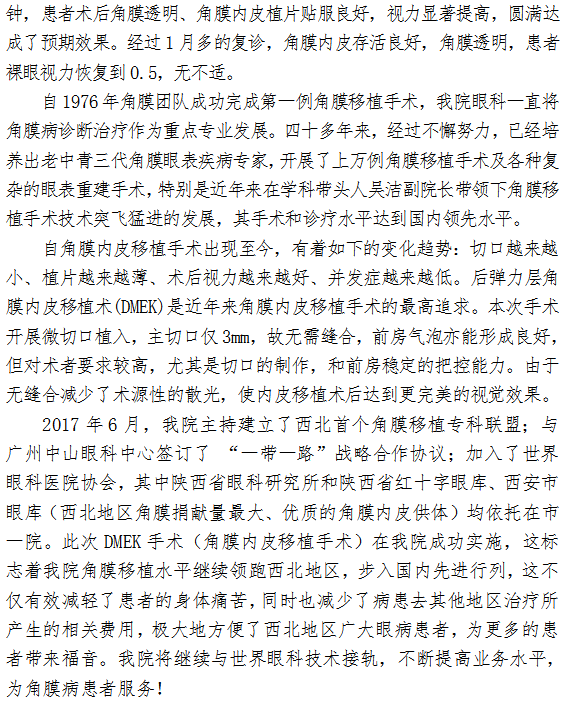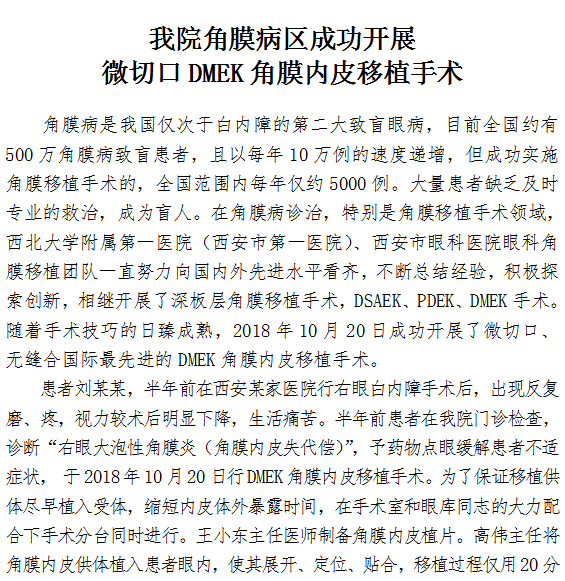 21点游戏攻略站 角膜病区成功开展微切口DMEK角膜内皮移植手术