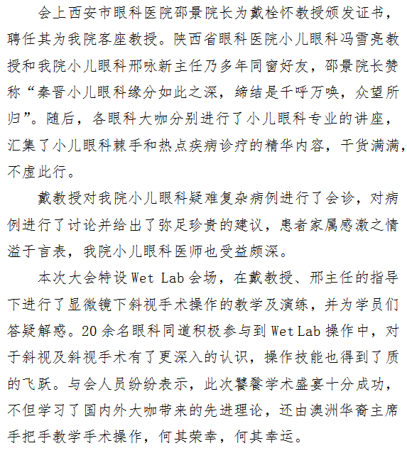 市一院成功举办2019西安“新丝路”国际眼科高峰论坛暨第一届秦晋小儿眼科国际高峰论坛