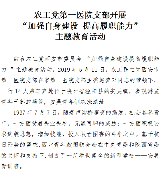 农工党第一医院支部开展‘加强自身建设 提高履职能力’主题教育活动