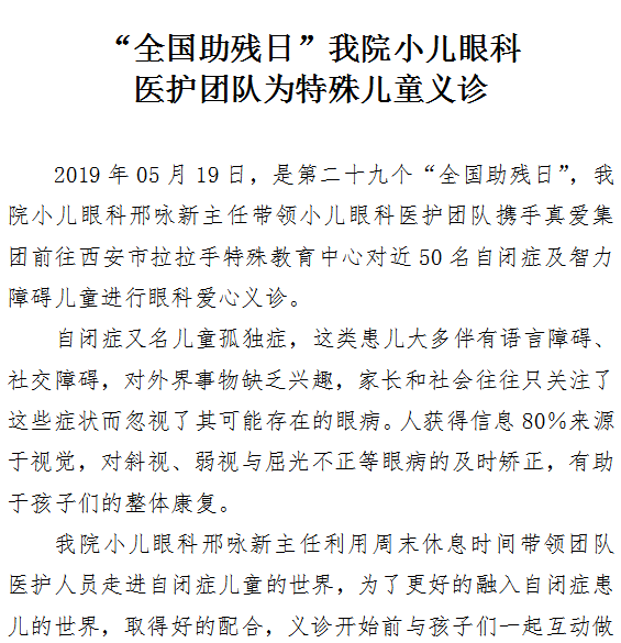 “全国助残日”21点游戏攻略站 小儿眼科医护团队为特殊儿童义诊