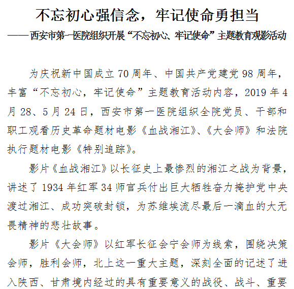 不忘初心强信念,牢记使命勇担当——市一院组织开展“不忘初心、牢记使命”观影活动
