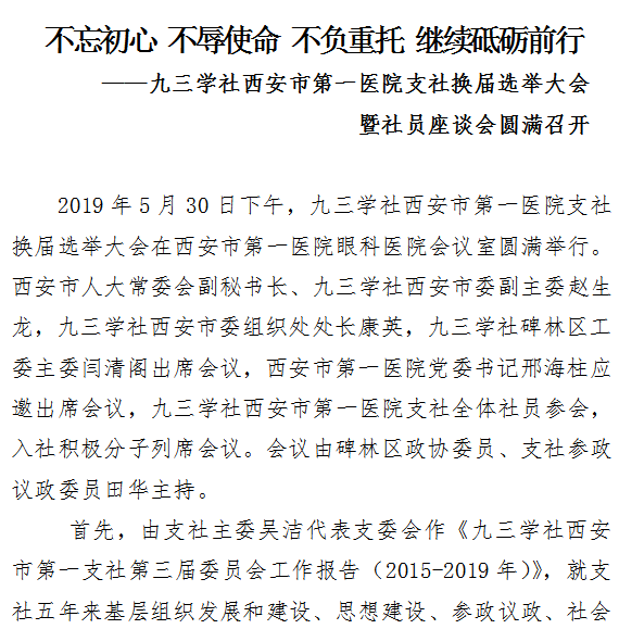 不忘初心 不辱使命 继续砥砺前行——九三学社市一院支社换届选举大会社员座谈会圆满召