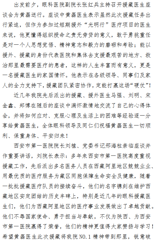 21点游戏攻略站 欢送眼科黄磊同志参加陕西省第五批“组团式”援藏医疗队