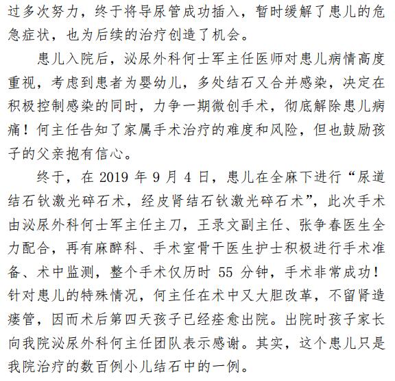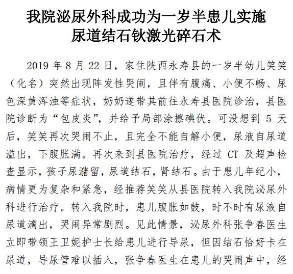 21点游戏攻略站 泌尿外科成功为一岁半患儿实施 尿道结石钬激光碎石术