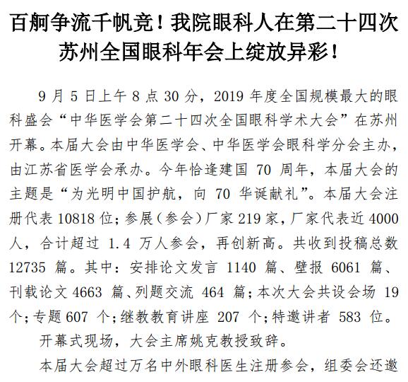 百舸争流千帆竞!21点游戏攻略站 眼科人在第二十四次苏州全国眼科年会上绽放异彩!
