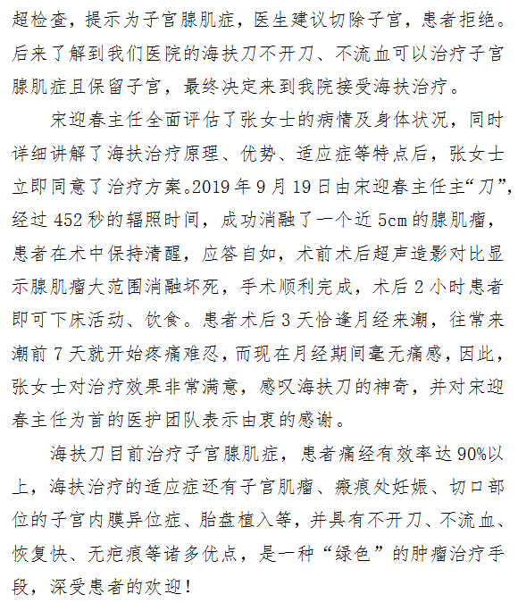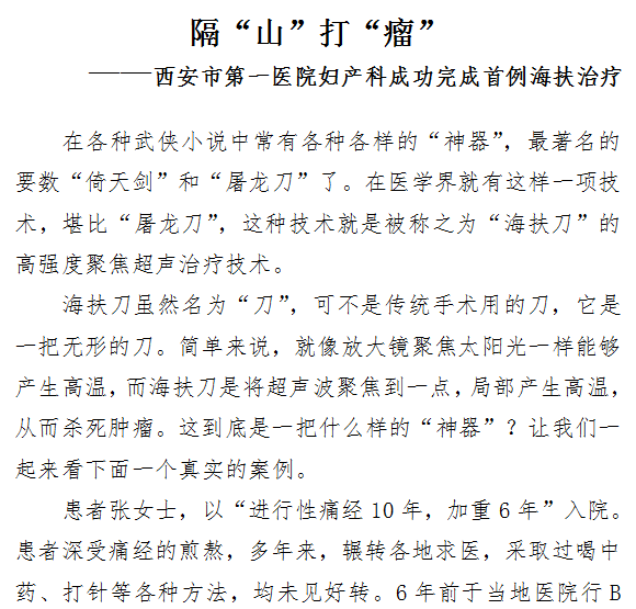 隔“山”打“瘤” ——21点游戏攻略站 妇产科成功完成首例海扶治疗