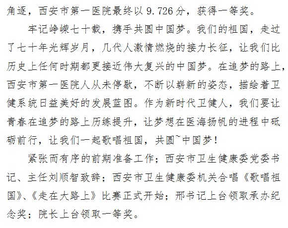 21点游戏攻略站 在市卫健委 “我和我的祖国”歌咏比赛中荣获一等奖