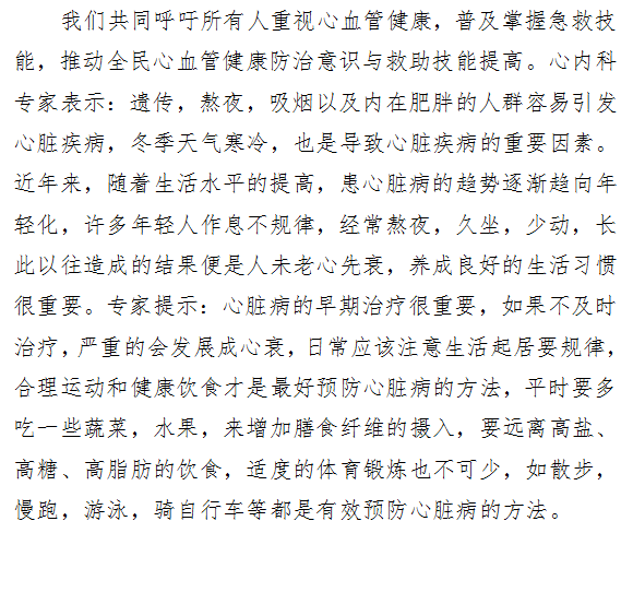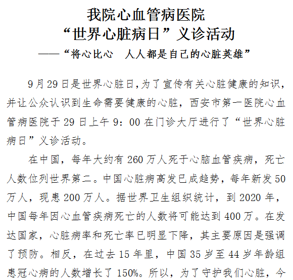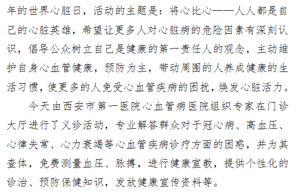 21点游戏攻略站 心血管病医院 “世界心脏病日”义诊活动 ——“将心比心 人人都是自己的心脏英雄
