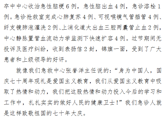 做好人民健康卫士 ——急诊科致敬祖国七十年大庆
