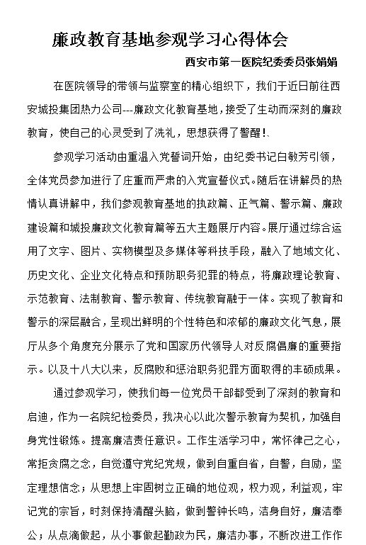 廉政教育基地参观学习心得体会