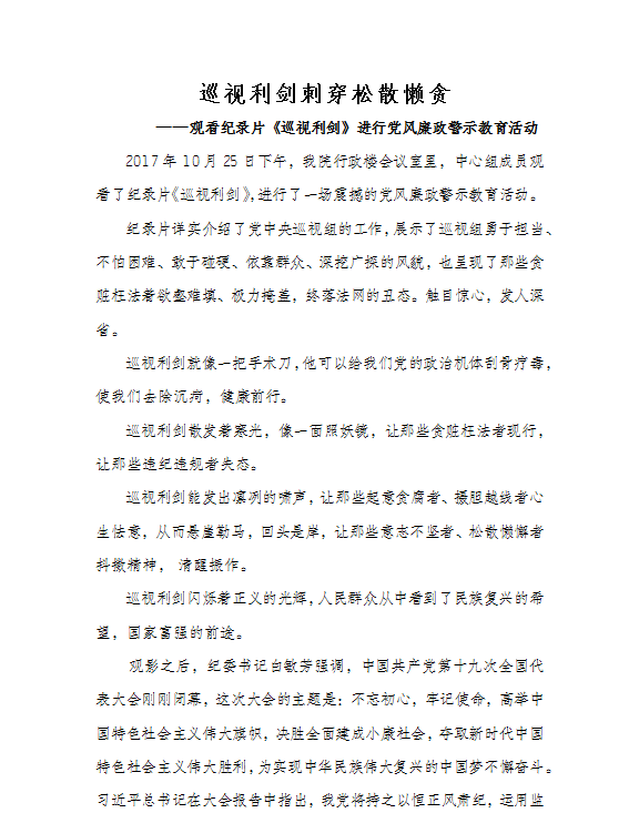 巡视利剑刺穿松散懒贪——观看纪录片《巡视利剑》进行党风廉政警示教育活动