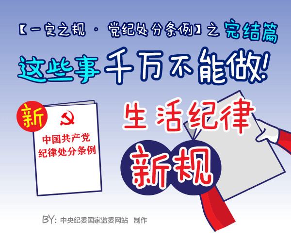近日,新修订的《中国共产党纪律处分条例》公布。《条例》共142条,与原条例相比,新增11条,修改65条,整合了2条,对违反政治纪律、组织纪律、廉洁纪律、群众纪律、工作纪律、生活纪律等六项纪律行为的处分规定进行多处修订。下面就带大家认识六大纪律新规之生活纪律,请广大党员学习。