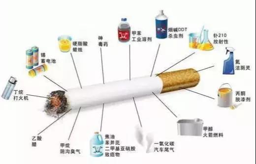 4、烟草烟雾至少含有69种致癌物。