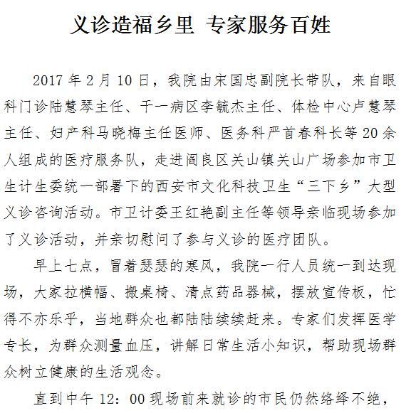 义诊造福乡里 专家服务百姓