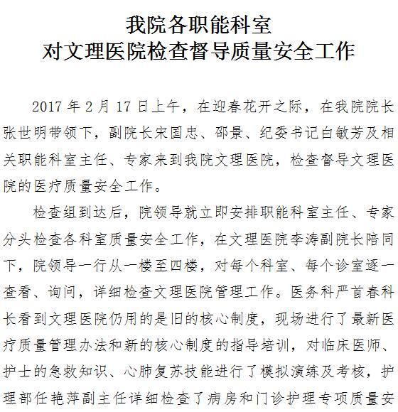 21点游戏攻略站 各职能科室对文理医院检查督导质量安全工作