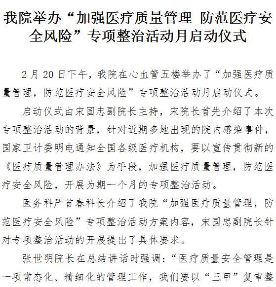 21点游戏攻略站 举办“加强医疗质量管理 防范医疗安全风险”专项整治活动月启动仪式