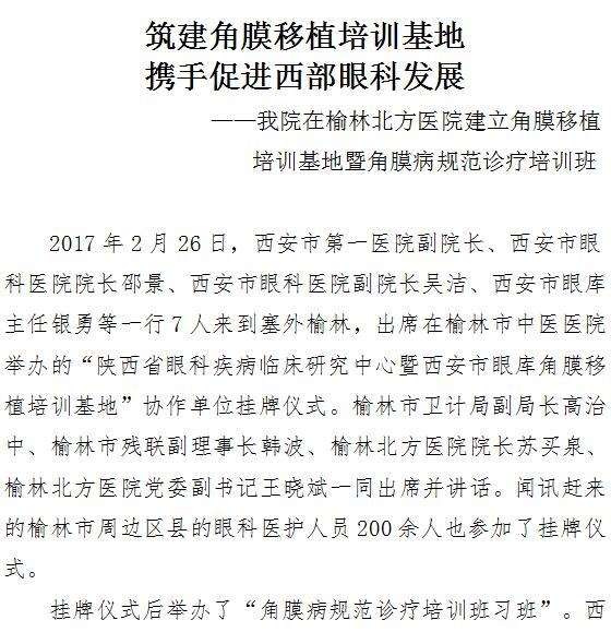 21点游戏攻略站 在榆林北方医院建立角膜移植培训基地暨角膜病规范诊疗培训班