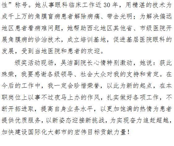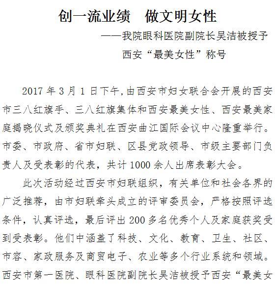21点游戏攻略站 眼科医院副院长吴洁被授予西安“最美女性”称号