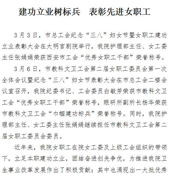 建功立业树标兵 表彰先进女职工