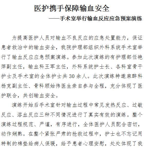 医护携手保障输血安全 ——手术室举行输血反应应急预案演练