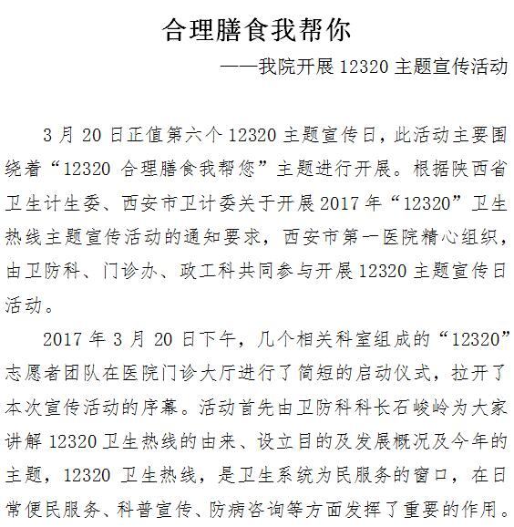 合理膳食我帮你 ——21点游戏攻略站 开展12320主题宣传活动