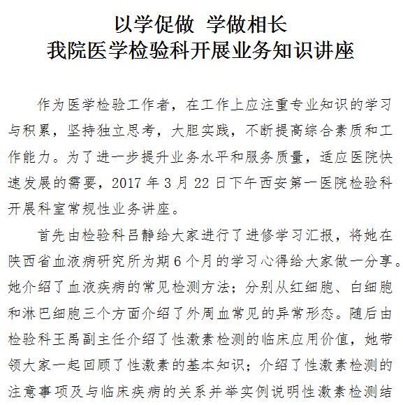 以学促做 学做相长 21点游戏攻略站 医学检验科开展业务知识讲座