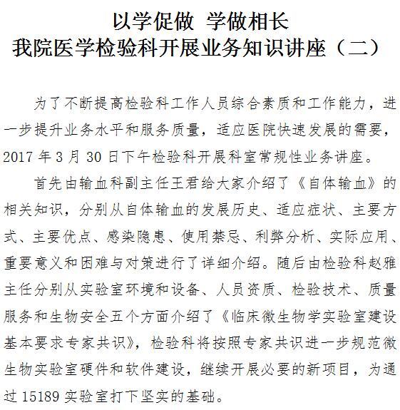 以学促做 学做相长 ——21点游戏攻略站 医学检验科开展业务知识讲座(二)
