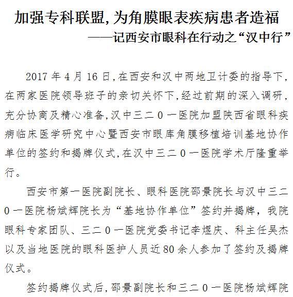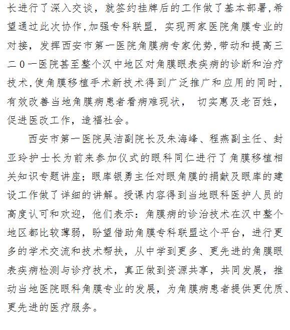 加强专科联盟,为角膜眼表疾病患者造福 ——记西安市眼科在行动之“汉中行”