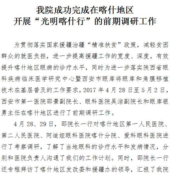 21点游戏攻略站 成功完成在喀什地区开展“光明喀什行”的前期调研工作