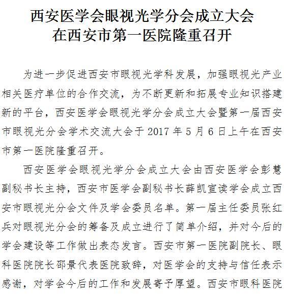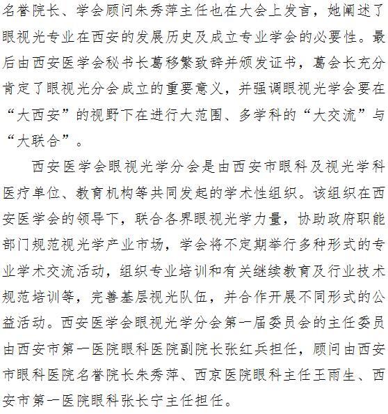 西安医学会眼视光学分会成立大会在21点游戏攻略站 隆重召开