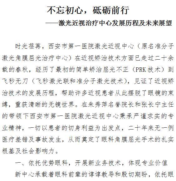 不忘初心 砥砺前行 ——激光近视治疗中心发展历程及未来展望