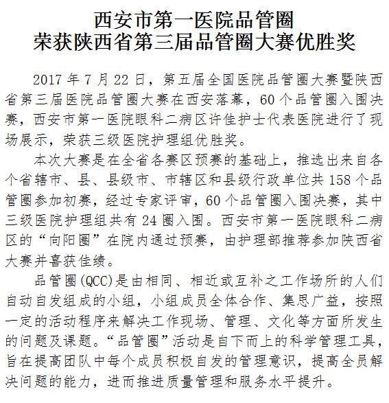 21点游戏攻略站 品管圈荣获陕西省第三届品管圈大赛优胜奖