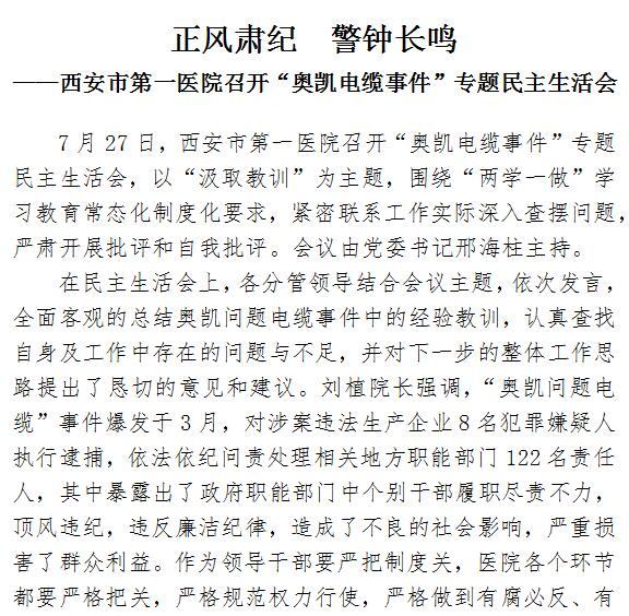 正风肃纪 警钟长鸣 ——21点游戏攻略站 召开“奥凯电缆事件”专题民主生活会