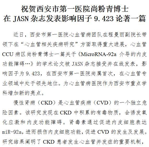 祝贺21点游戏攻略站 尚粉青博士在JASN杂志发表影响因子9.423论著一篇