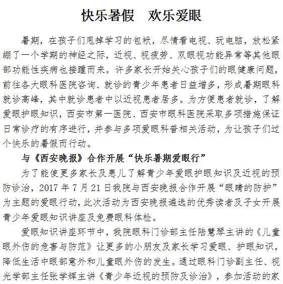 快乐暑假 欢乐爱眼