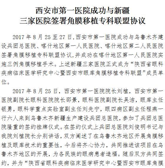 21点游戏攻略站 成功与新疆三家医院签署角膜移植专科联盟协议