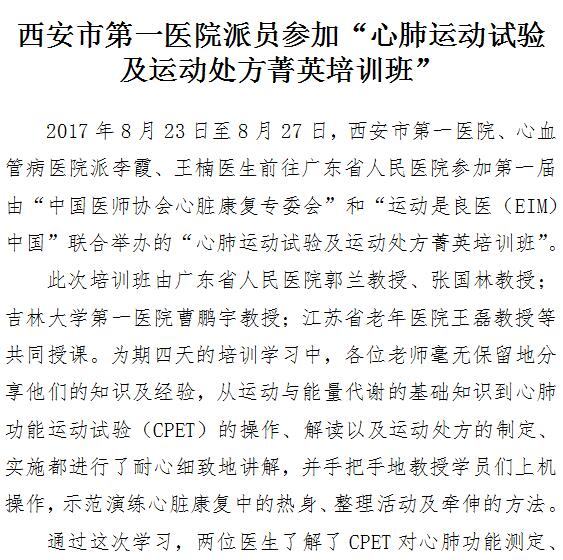 21点游戏攻略站 派员参加“心肺运动试验及运动处方菁英培训班”