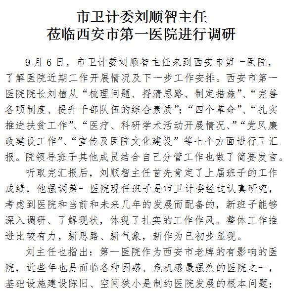 市卫计委刘顺智主任莅临21点游戏攻略站 进行调研