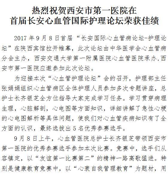 热烈祝贺21点游戏攻略站 在首届长安心血管国际护理论坛荣获佳绩