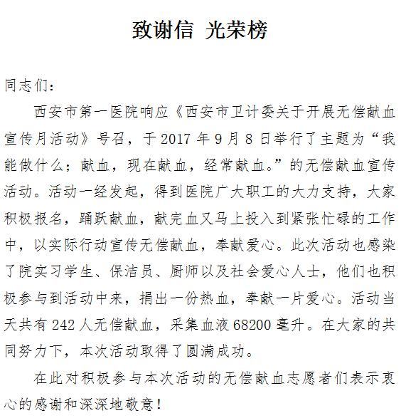 致谢信 光荣榜
