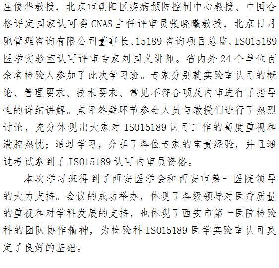 21点游戏攻略站 成功举办ISO15189医学实验室认可内审员培训班