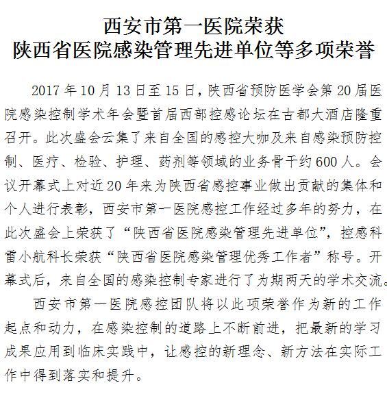 21点游戏攻略站 荣获陕西省医院感染管理先进单位等多项荣誉